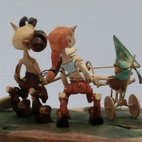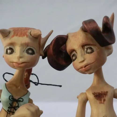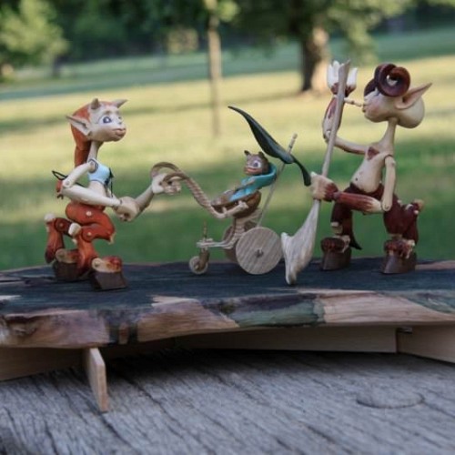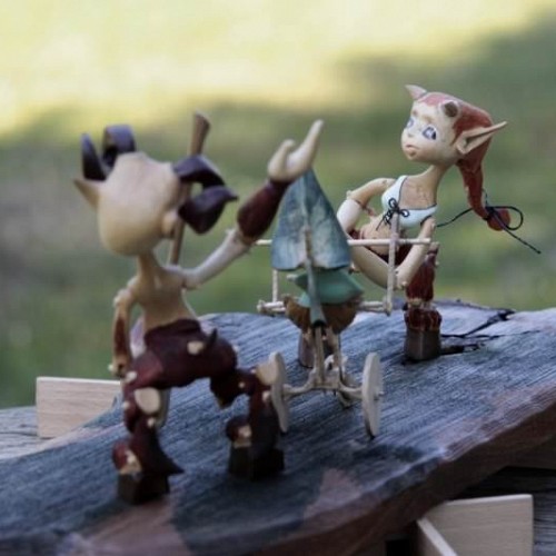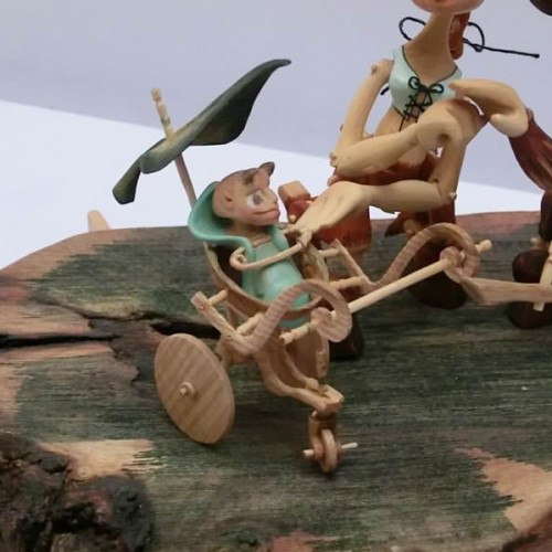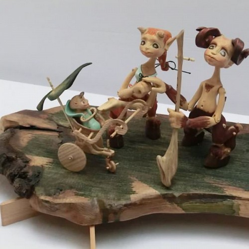 Tato rodinka Serafů je vyrobena technologií kolíčkových dolls. Nastavitelnost kloubních spojů zajišťuje těsnost klínových čepů a středové vedení kloubu vloženým čepem. Každá postavička má 15 kloubních spojů a kočárek jejich drobečka je ze skořápky ořechu a jasanového dřeva.