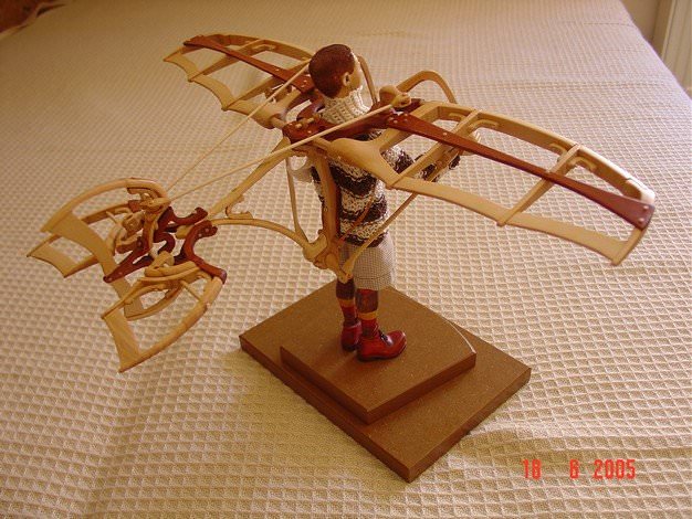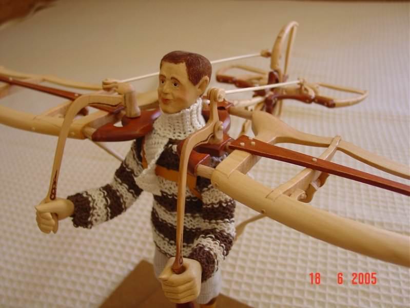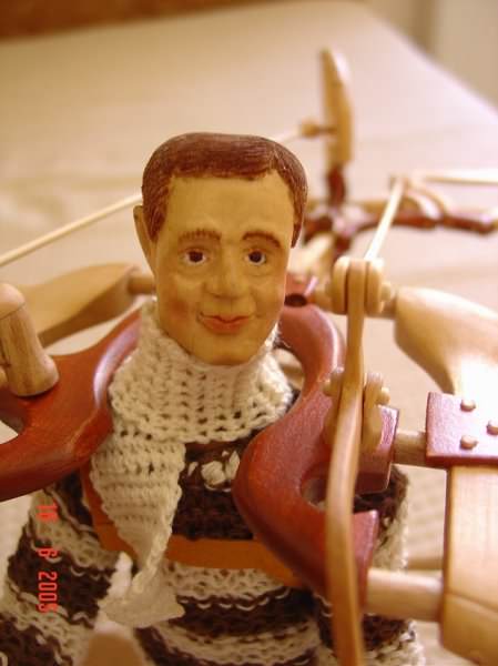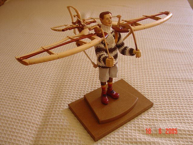 Zpracováno dle fotodokumentace a přání zákazníka (průkopník letectví). Řídicí prvky letadélka jsou plně funkční a postavička má 7 nastavitelných kloubních spojů.